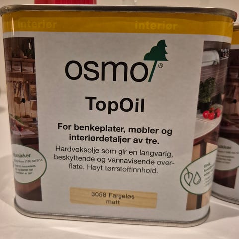 To ubrukte spann med Osmo hardvoksolje naturell 3041, selges til 1200 pr stk. Nypris er 1899