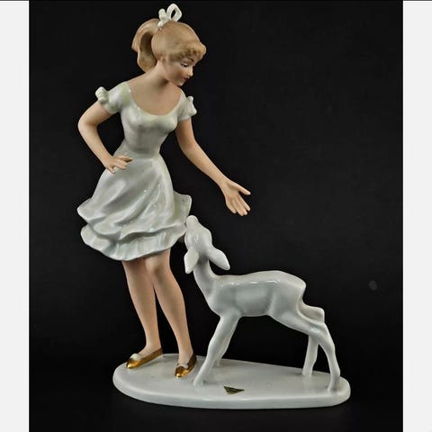 Nydelig figur som selges rimelig grunnet en bitte liten del av en finger mangler. Syntes ikke uten at den blir studert.