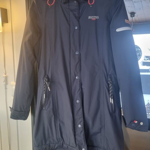 Vind og vannavstøtende jakke med fine detaljer. Hetten er avtagbar og det er justerings muligheter på ermene. Jakken er mørk blå og fremstår som ubrukt