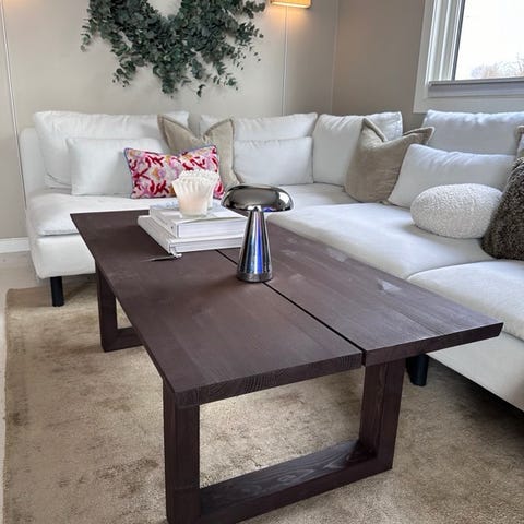100 year old walnut coffee table, beautifully restored with a little shine ✨️