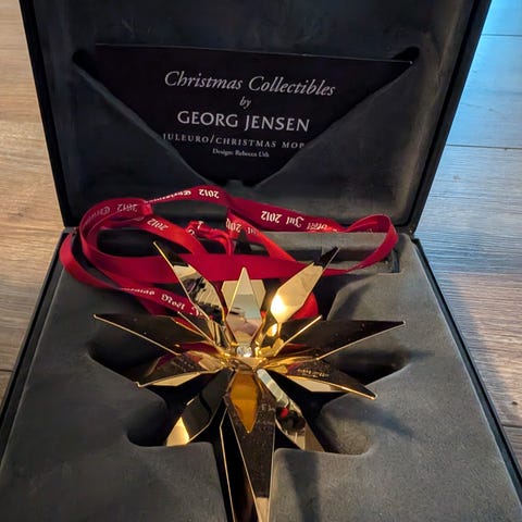 Ubrukt/uåpnet og pent brukt julepynt fra Grorg Jensen, Royal Copenhagen og Stenige selges.