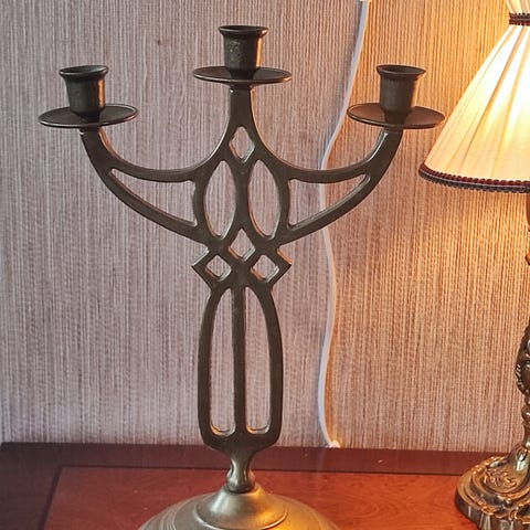Vintage lysestaker H:13 cm ( 2 stk ) laget i messing. Passer til standard stearinlys. Lysestakene har en klassisk design og kan brukes som dekorasjon i hjemmet. Naturlig patina og bruksmerker kan forekomme. Solide lysestaker, selges samlet til oppgitt pris. Søkeord: vintage,retro,stue,interiør,dekor,dekorasjon,stilrent,unik,elegant,