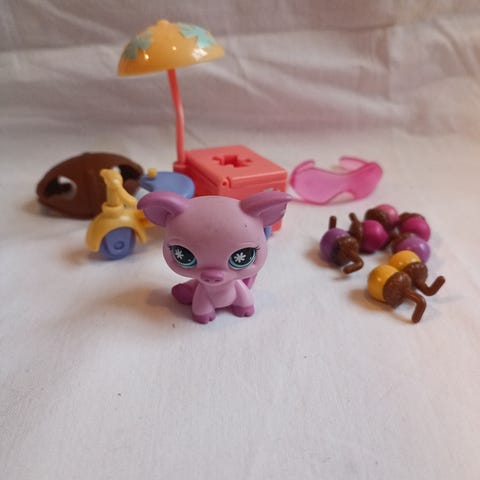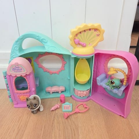 Littlest Pet Shop lekesett i plast, hovedsakelig rosa og lilla. Egnet som lekesett for barn, designet for å holde små figurer og tilbehør. Inneholder flere nivåer og rom for lek.