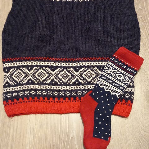 Tykkt flissett nameit + hjemmestrikket ull sokker 104