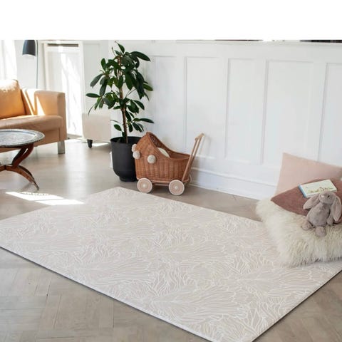 Matten er vendbar og kommer med to vakre design. På baksiden er Beige Blocks.