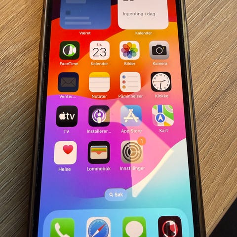 Telefonen er pent brukt og har ingen synlige skader. Prisen er justert for å reflektere redusert batterihelse (77 %) samt ustabil ladeport. Trådløs lading fungerer helt normalt.
