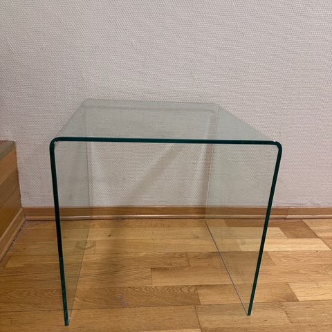 Veldig pent brukt sidebord i svart, rundt med glassplate.