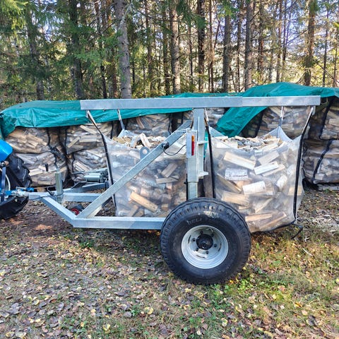 Tømmerhenger med kran og vinsj – solid og forsterket