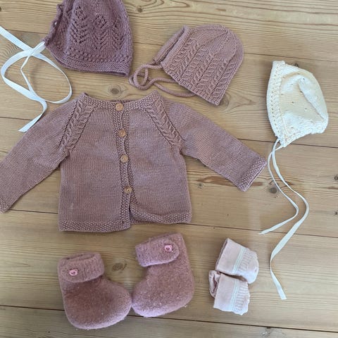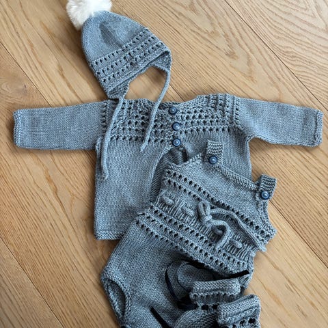 «Helle» hentesett - jakke, bukse, strømper og lue🌺👶