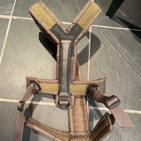 Jerven Jervehiet str M varmepose for hund med camouflagemønster. Designet for å gi varme til hunder under kalde forhold. Posen er laget for utendørs bruk og har justerbare stropper for feste.