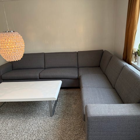 Sort velur hjørnesofa kjøpt på Skeidar for 5 år siden.