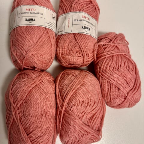 Diverse mitu nøster, 6 hele, 4 rester på 50 gram og litt til. Selges helst samlet, men spør gjerne etter fargenummer osv