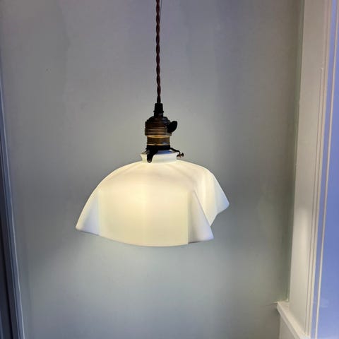 Gammelt messing-oppheng, med ring til strekk-avlastning.