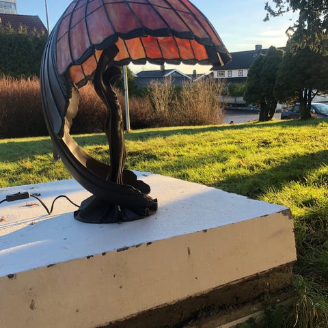 Gedigen antikk kobberlampe