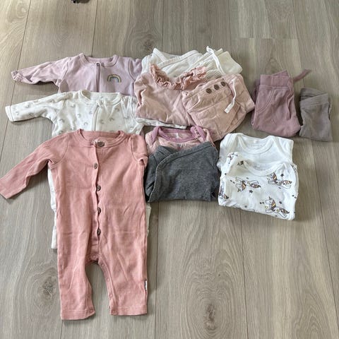 Selger en del klær etter datteren min da vi skal få en gutt denne gangen. Klær fra forskjellige merker, men mest fra hm. Lite bruksmerker da hun har hatt masse klær og ikke rekt å bruke alle så mye.