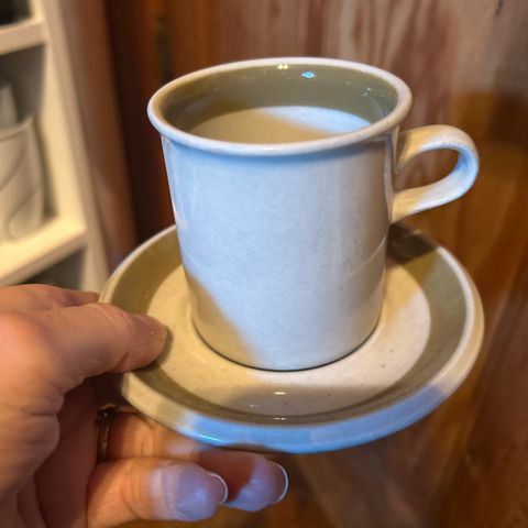 Lite espresso kopp 6 cm høy. Og tesil i samme design.