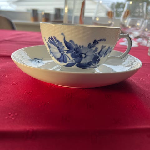 Royal Copenhagen kaffekopper med fat i gull og hvitt