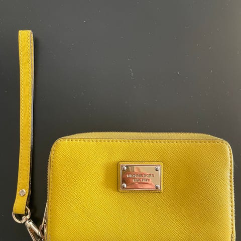 Michael Kors Dame Lær Lommebok i beige farge. Lommeboken har glidelås og flere rom for kort og penger.