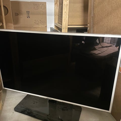 Samsung TV med ulike tilkoblingsmuligheter, inkludert USB, HDMI og SCART. Må hentes.