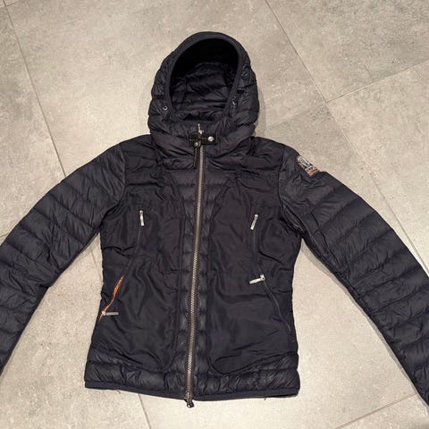 Den har blitt lappet på innsiden av erme da det kommer litt dun ut av sømmen. Den er liten i størrelsen jeg bruker vanligvis s/m