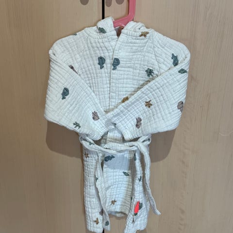 Myk og varm badekåpe i fleece fra Watch Me Grow, str. 6–12 måneder. Ikke brukt. Fin gave til babyshower og ellers.