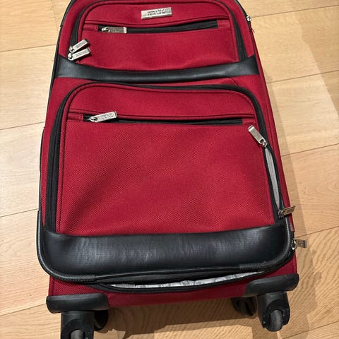 Koffert som går som handbagasje med mulighet for å bli trekt av far eller mor. Brukt få ganger og barn har blitt for store. Må hentes på Ammerud i Oslo. Vi har en make for gutt.