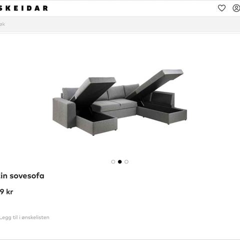 Sovesofa fra IKEA selges da det ikke er plass til den mer. 140x200