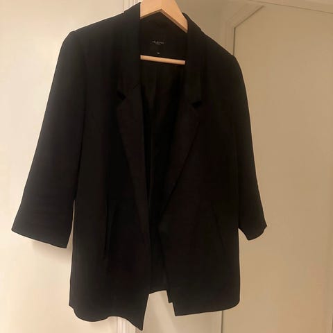 Selected femme hvit blazer i bomull, størrelse xs. Jakken har lang erm. Passer til ulike anledninger hvor lett ytterplagg eller formell jakke er ønskelig.