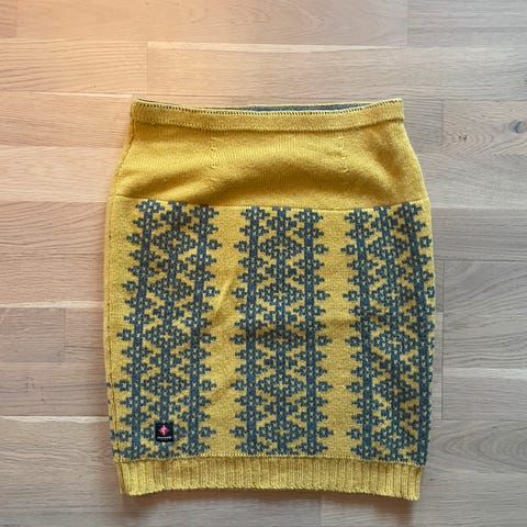 Selger et pent brukt skjørt fra Graveniid. Avvi skjørt. Lilla farge med svart mønster. Det står L, men den er litt liten i størrelsen og er mer M. Litt krøllete etter å ha ligget i skapet.