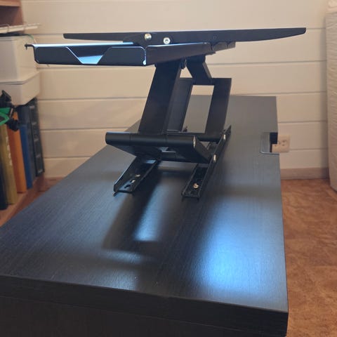 Det fungerer fint til det den skal. Den har bruksmerker og USB-tilkoblingen fungerer ikke som den skal. Men den har ingen problemer med å senkes og heves, og den er sterk og solid. Kjøpt og importert fra Storbritannia, er antakeligvis ganske unik i Norge.