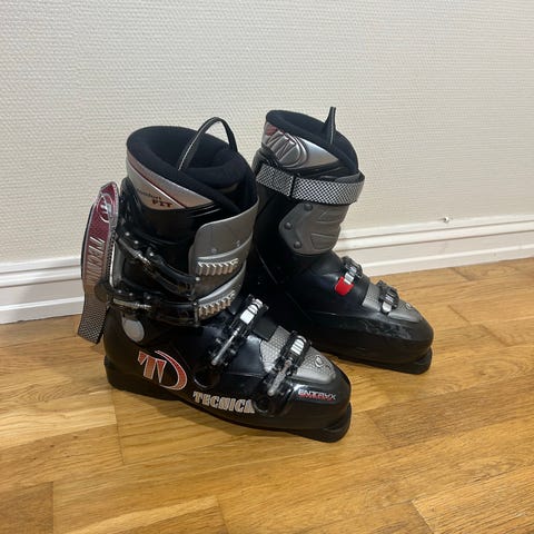 Fine alpinstøvler 265 mondopoint, 326mm, 41-41.5 vanlig sko størrelse. Skistøvlene har flere spenner for justering og en solid såle for godt feste på skiutstyr. Kan hetes på Oppsal eller på Stortinget.