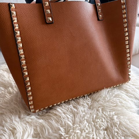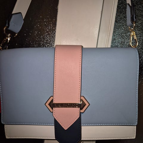 Valentino veske for dame laget av kunstlær i grønn farge. Vesken har to håndtak og en avtagbar skulderrem for variert bruk. Det følger både en smal og en bred skulderrem.