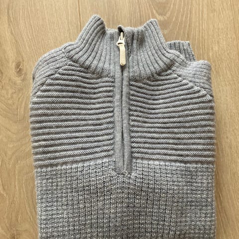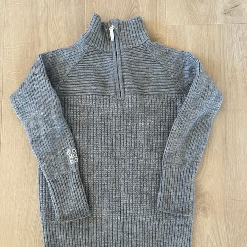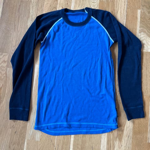 Fint brukt ullgenser fra Stormberg i str. 12 år (152). 100% merinoull. Svart med blå armer og detaljer.