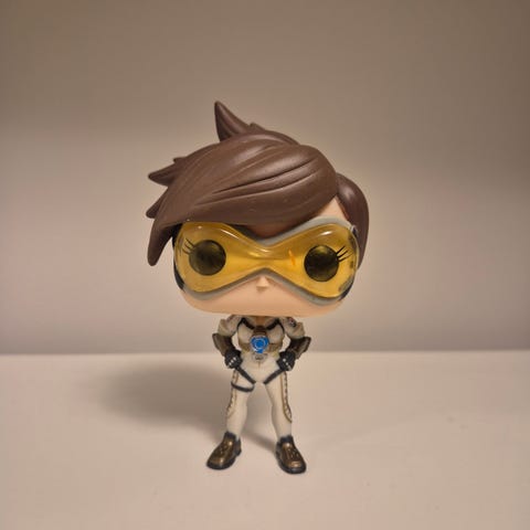 Funko Pop Valorant Reyna figur med karakteristisk lilla og rød hårfarge. Figuren er en samlerfigur fra Valorant-serien, detaljert med karakterens kjente antrekk og våpen. Passer for samlere og fans av spillet.