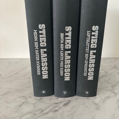 Stieg Larsson Millennium-trilogien består av tre romaner med titlene 'Flickan som lekte med elden', 'Män som hatar kvinnor' og 'Luftslottet som sprängdes'. Bøkene er skrevet på tysk og tilhører krim- og thriller-sjangeren.