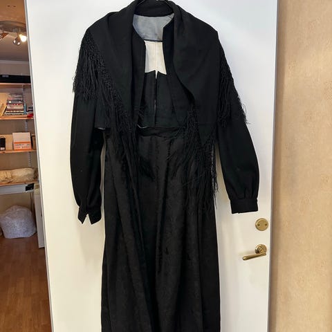 130 cm fra skulder til nedre kant.