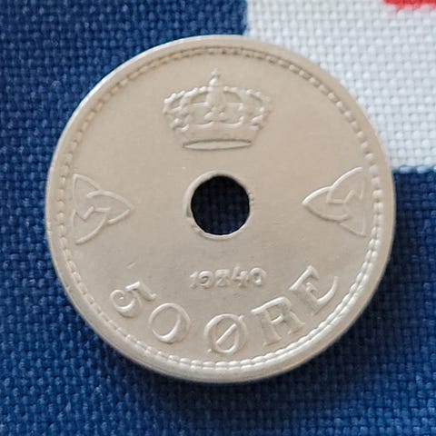 Kong Haakon VII Norsk mynt 50 øre sølv