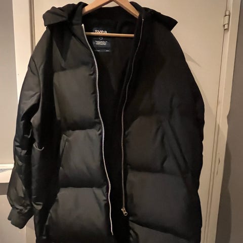 Jakken er pent og lite brukt. Innhold dun. Veldig god kvalitet. Størrelsen er en stor small. Hetten er avtagbar. Kan sendes.