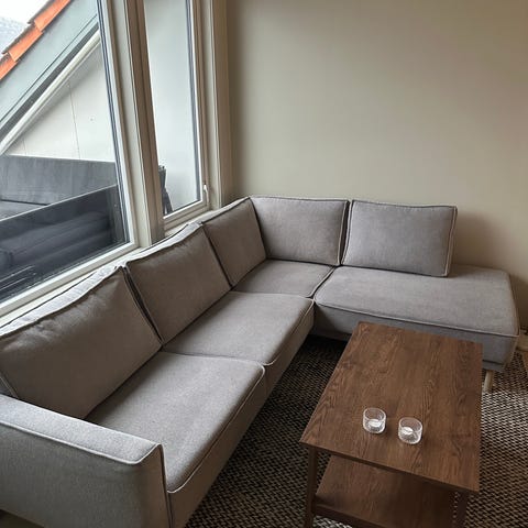 Lite brukt Gabor hjørnesofa i lys grått Hemlys-tekstil. Kjøpt ny i 2023, men har stått lagret store deler av tiden. Røyk- og dyrefritt hjem. Fremstår i meget god stand uten synlig slitasje.