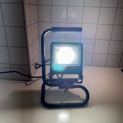 Stødig arbeidslampe/bygglampe på stativ med doble lamper