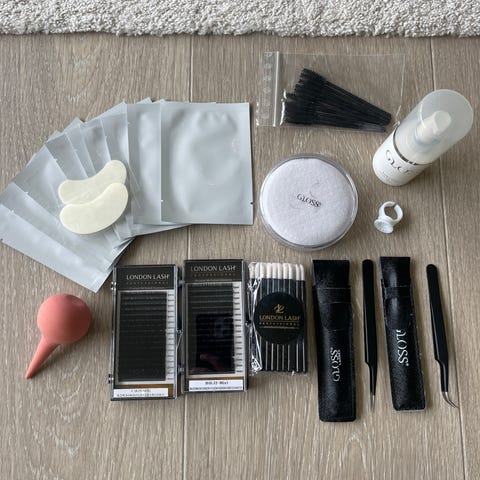 Inneholder: Klassiske vipper, volumvipper, isolerings- & volumpinsett, vippelim, primer + bonder, lash shampoo + brush, under eyepads, tape, vippebørster, glue wipes, micro brushes, lip brushes, glue rings, vifte, speil,