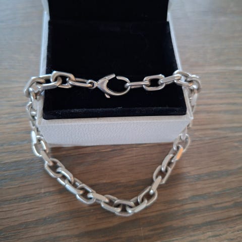 Selger et tvunnet sølvkjede i 925 sølv (sterling). Veier 17 g på kjøkkenvekten.