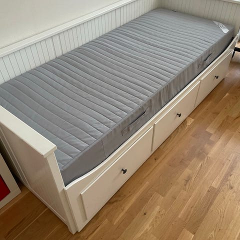 Nordli seng fra Ikea med oppbevaringsskuffer.