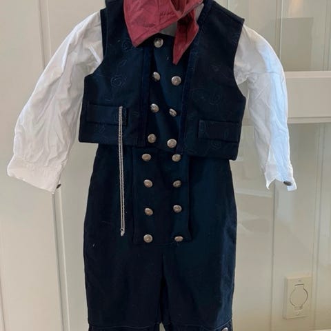 Pent brukt barnebunad med tilhørende skjorte og jakke.