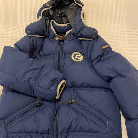Napapjiri Vinterjakke i en nydelig lys gull / champagne farge selges. Vanlig bruksslitasje og fremstår pen på. Str 152, men brukt av datteren min da hun var 10 (146).