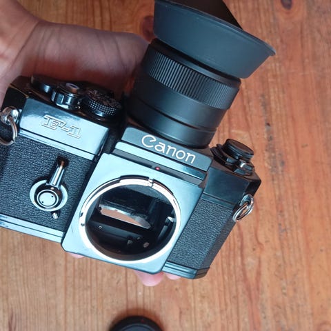 Canon FT QL 35mm speilreflekskamera med fire utskiftbare objektiver. Klassisk, helmekanisk kamera med manuell betjening, perfekt for deg som ønsker full kontroll og ekte analog fotografering på 35mm film. Selges som komplett pakke!