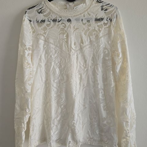 Vila Andre topper i størrelse L. Topp i hvit farge laget av polyester. Designet for kvinner med detaljer i blonder og kort erme.