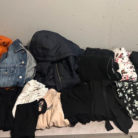 Flere av plaggene er aldri brukt,mye fint tøy.