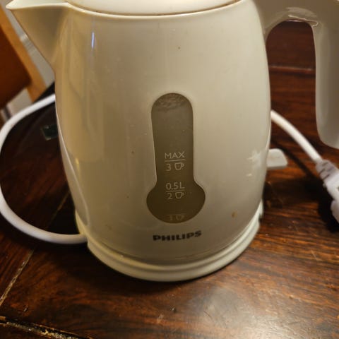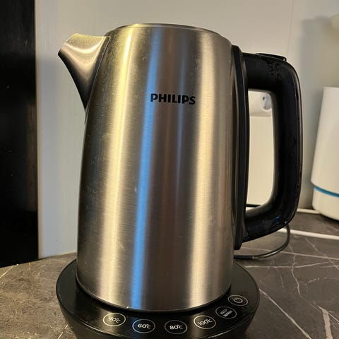 Philips vannkoker med kapasitet på 1,0 liter. Svart farge og måleindikator for vannmengde. Elektrisk med avtagbar base og kontrollpanel for temperaturinnstillinger.