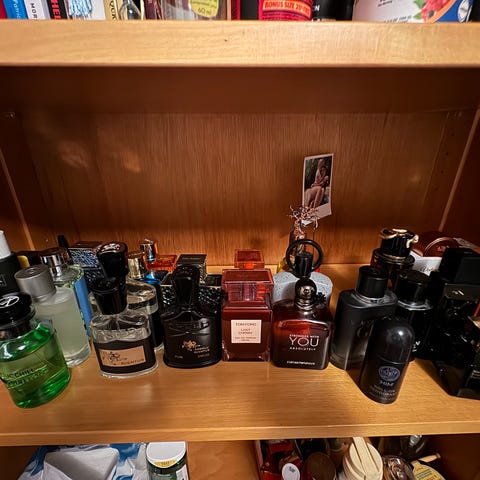Selger parfyme-dekanter av kjente designer- og nisjedufter.